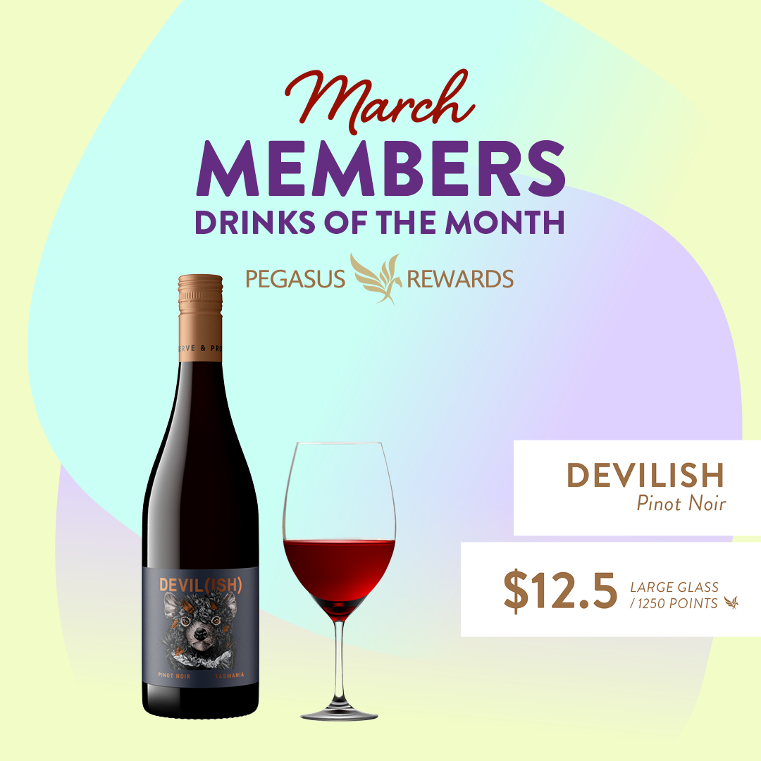 Being a Pegasus Rewards member has its perks. Enjoy our exclusive prices and point-redemption offers on some seriously good sips. Check out this month’s members only specials: